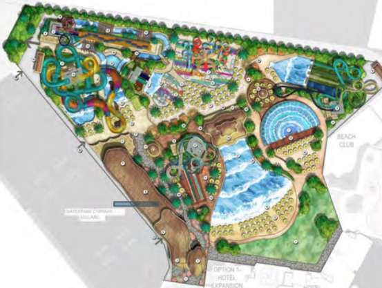 The site is here, looks like whitewater west job, with a wall runner family raft slide, aqua play, 180 degree flowrider, wave pool and all your usual body and raft slides.